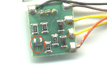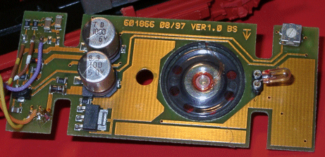 Soundmodul. Im roten Oval sieht man das Kabel vom Funktionsausgang F2.