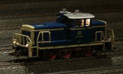 €60. Weil meine Anlage digital gesteuert wird und seit kurzem auch für den Motor mit dem kleinen Scheibenkollektor (SFCM) ein Umrüstsatz aus dem hause Märklin mit bewährt guten Fahreigenschaften zur Verfügung steht, ersetzte ich meinen früher mal in dieser Lok verbauten LDec3000 von Digitaltrain durch das nun erschienene Set 60903. Das Ergebnis des Umbaus bestätigt, dass dieses Set für diese Lok erste Wahl ist. Einzig das Defizit der nicht federnd gelagerten Mittelachse bleibt bestehen. Eine solche Achse findet man zur Verbesserung des Massekontaktes bei neueren Märklin-Loks der Baureihe V60 u.ä. Meinen Decoder habe ich - wie es mittlerweile üblich ist, mit den nötigen SMD-Bauteilen um die extern schaltbaren Funktionen F3 und F4 erweitert. Bei F4 entschied ich mich einmal mehr für die Lösung des MIST7: Hierdurch kann eine externe Funktion geschaltet werden, ohne das dadurch die Abschaltung der Anfahr- und Bremsverzögerung wegfällt. Gerade für eine Rangierlok ist das ein richtiges "Schmankerl" (wie der Schwabe zu sagen pflegt), da man so die direkte Kontrolle über die Lok hat und gleichzeitig - vorbildgerecht - an beiden Seiten der Lok das A-Licht (Spitzensignal) leuchtet.